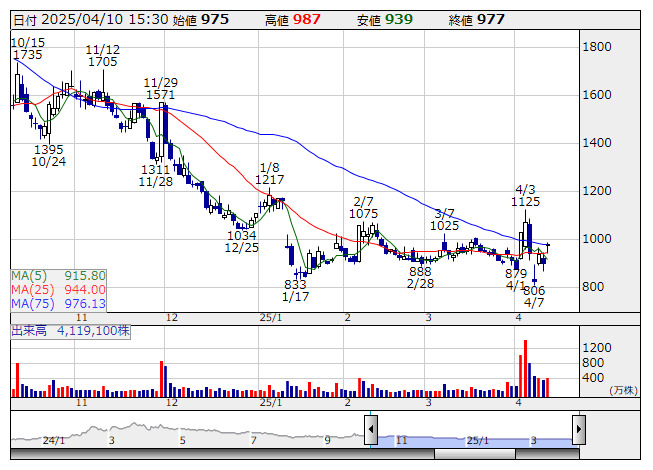 QPS研究所 <日足> 「株探」多機能チャートより■財務省 : 4月10日受付