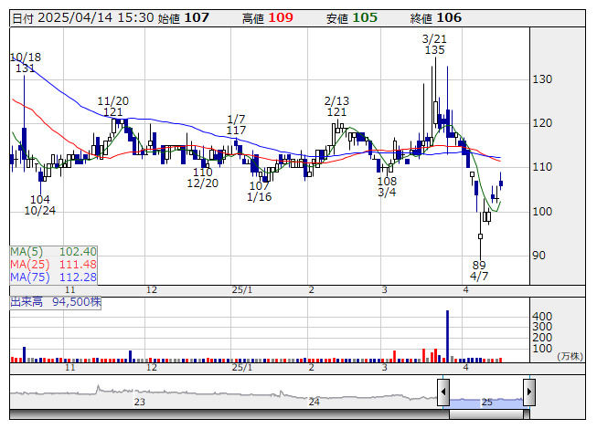 デザインワン <日足> 「株探」多機能チャートより■財務省 : 4月14日受付
