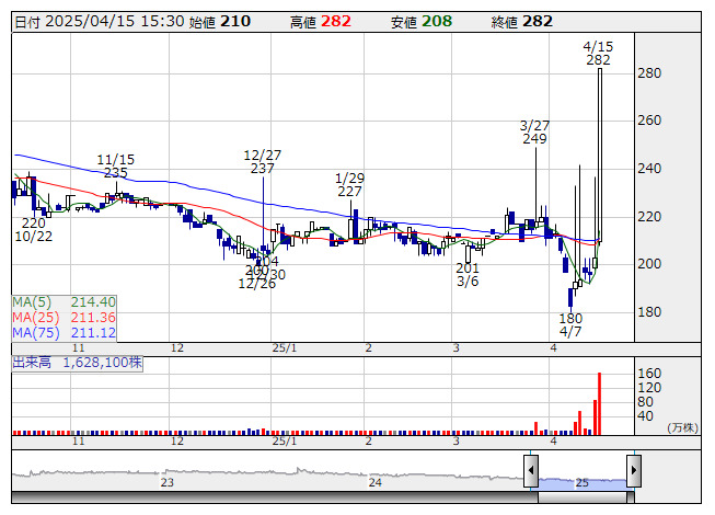 ラピーヌ <日足> 「株探」多機能チャートより●本日の株価上昇率ランキング【ベスト50】