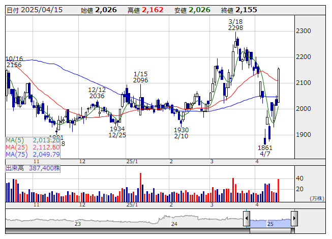 パソナG <日足> 「株探」多機能チャートより銘柄名<コード>15日終値⇒前日比
