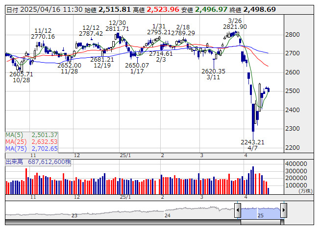 トランプ米政権が打ち出す関税政策への警戒感が拭えない。同政策を巡り方針を二転三転させていることも不確実性を高め、先行き不安を助長している。日本においては自動車や半導体製造装置といった主力産業への影響が心配だ。世界経済が失速し、日本経済にも下押し圧力がかかるとの懸念が広がるなか、景気動向に敏感に反応する個人消費への影響も懸念されるところで、株式市場では生活防衛のテーマが関心を集めている。