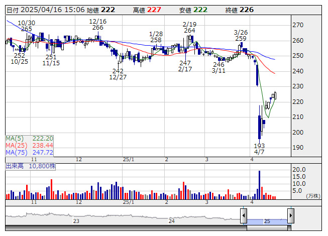 アエリア <日足> 「株探」多機能チャートより4月16日に配信した当記事も取り消します。