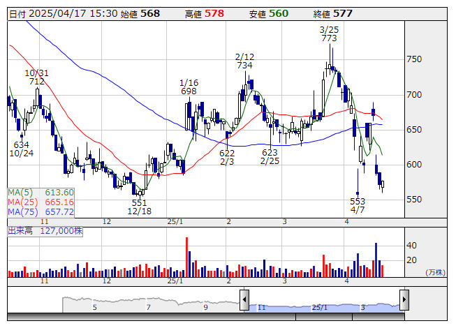 マテリアルG <日足> 「株探」多機能チャートより○マテリアルG <156A> [東証G]