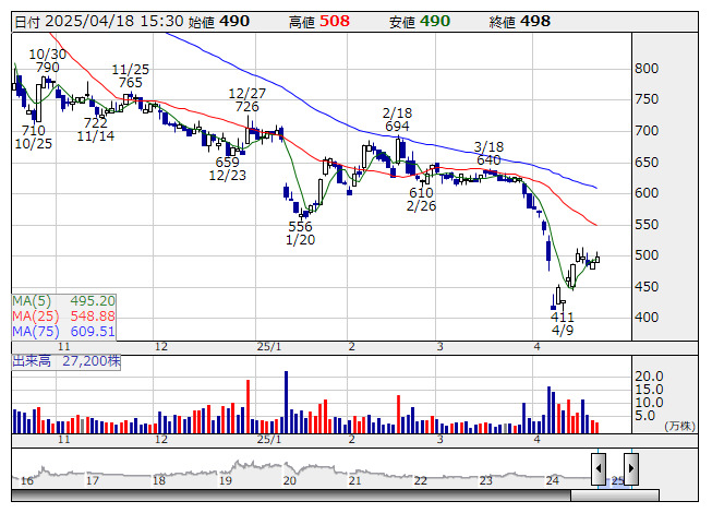 メタリアル <日足> 「株探」多機能チャートより■財務省 : 4月18日受付