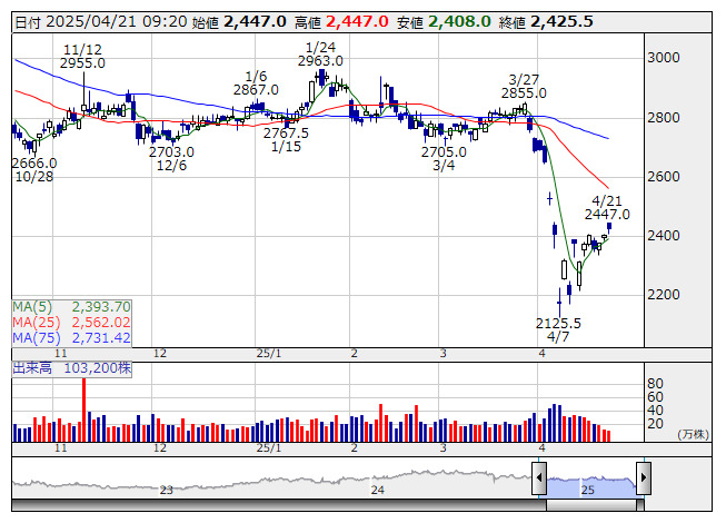 2025年04月21日09時21分 【材料】ADEKAはしっかり、旧村上ファンド系から株主提案受領 ADEKA <日足> 「株探」多機能チャートより ADEKA<4401>はしっかり。前週末18日取引終了後、旧村上ファンド系のシティインデックスイレブンスから株主提案の書面を受領したと発表した。内容は「上場子会社(現在、具体的には日本農薬株式会社)の保有方針について検討するための特別委員会の設置に係る定款変更の件」という。 なお、日本農薬<4997>も前週16日、シティインデックスイレブンスから株主提案を受けたことを明らかにしている。 出所:MINKABU PRESS