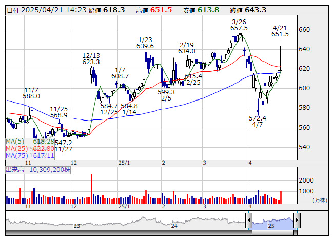 王子HD <日足> 「株探」多機能チャートよりこれは次期中期経営計画の公表に先立つもので、詳細は5月30日に発表する予定。28年3月期の連結純利益目標は800億円(同570億円)に設定しており、事業戦略として「既存事業の収益力を強化し、資本効率の改善に重点を置いた経営で、将来の進化に向けた強固な収益基盤を構築する」ことを掲げている。