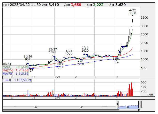 【材料】前場のランキング【値上がり率】 (4月22日)