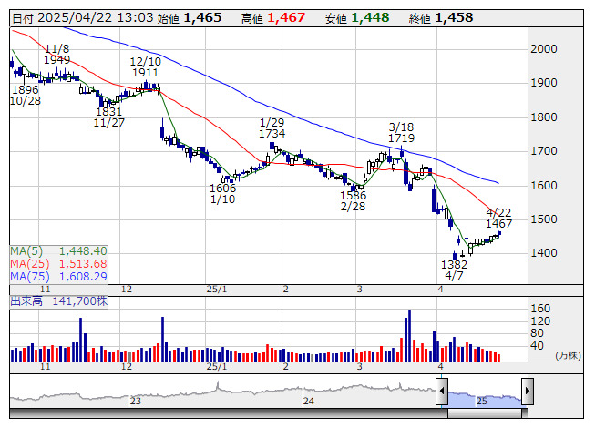 アスクル <日足> 「株探」多機能チャートより■財務省 : 4月22日受付
