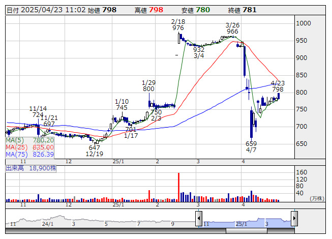 全保連 <日足> 「株探」多機能チャートより■財務省 : 4月23日受付