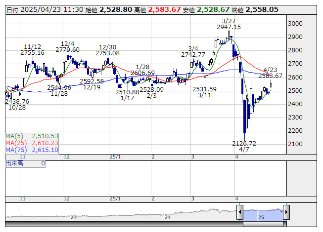 精密機器 +2.54 日本MDM <7600> 、A&Dホロン <7745> 、Vテク <7717>