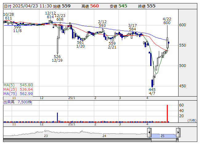 日本麻 <日足> 「株探」多機能チャートより■財務省 : 4月23日受付