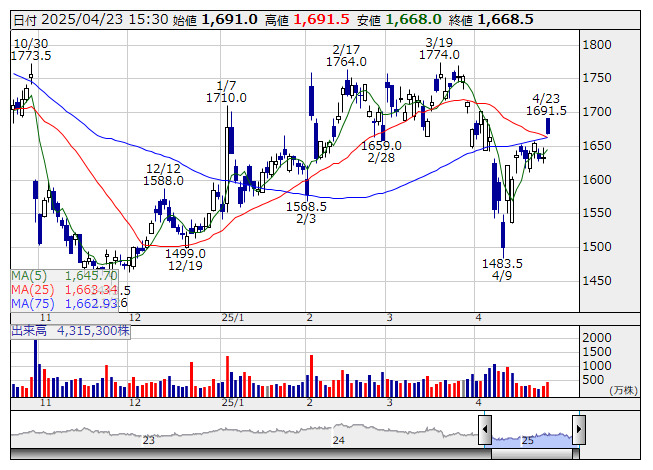 2025/04/17 10.56% → 8.87% 133,992,380 2025/04/23 15:53