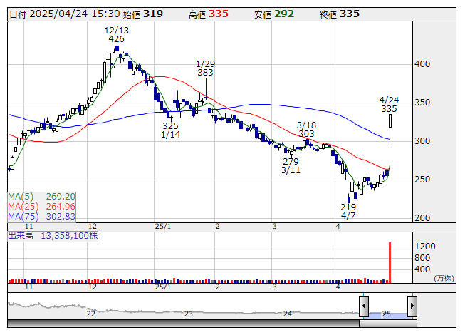 【材料】本日のランキング【値上がり率】 (4月24日)
