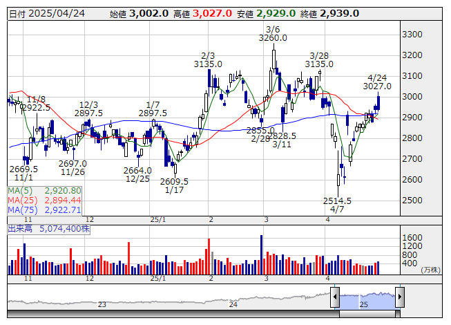 <6758> ソニー 25.12ドル 3584円 (56円)