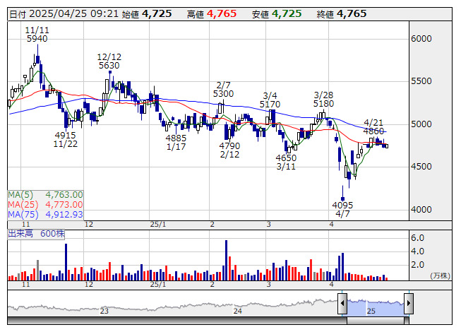 ULSグルプ <日足> 「株探」多機能チャートより■財務省 : 4月25日受付