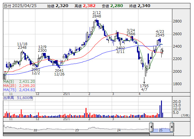また同日、2025年3月期の期末配当について、当期の業績が見通しを上回ったこと、今後の経営環境、将来のための成長投資等を総合的に判断し、直近の配当予想から5.50円配し、1株あたり23.00円とすることを発表した。