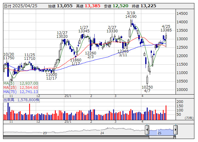 名村造 <7014> 1,824 +60 ( +3.4%) 80,200 ( 14,636) 76,500 ( 13,953)