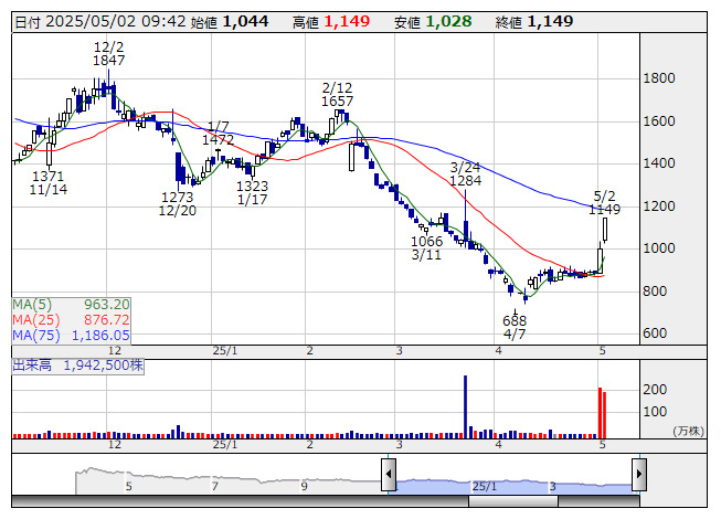 カウリス <日足> 「株探」多機能チャートより個別ではカウリス<153A>がストップ高。ティーケーピー<3479>、シェアリングテクノロジー<3989>、coly<4175>、バンク・オブ・イノベーション<4393>、アクリート<4395>など8銘柄は年初来高値を更新。オルツ<260A>、売れるネット広告社グループ<9235>、EduLab<4427>、ソーシャルワイヤー<3929>、ランサーズ<4484>は値上がり率上位に買われた。