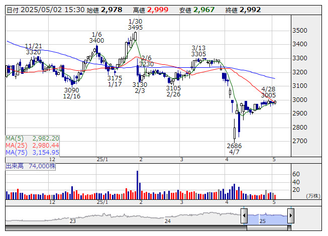 【特集】買い局面を迎えた【25日線上抜け】低PER銘柄 46社 <テクニカル特集> 5月2日版