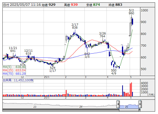 2025年05月07日11時16分 【材料】住友ファーマ---大幅反落、関税懸念で医薬品セクターが軟調 住友ファーマ <日足> 「株探」多機能チャートより 住友ファーマ<4506>は大幅反落。トランプ米大統領が医薬品に対する関税措置について「今後2週間内に発表する」と発言、関税への影響が警戒される形から、本日は医薬品セクターが業種別下落率のトップになっている。同社は直近、想定以上の上方修正が好感されて株価は急伸しており、利食い売り圧力なども強まりやすい状況にあったとみられる。また、同社は北米での売上構成比が高いとされ、相対的な関税の影響も大きいと懸念されている。 《ST》 提供:フィスコ