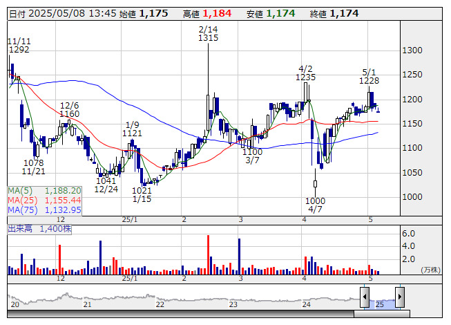 ユナイト <日足> 「株探」多機能チャートより■財務省 : 5月8日受付