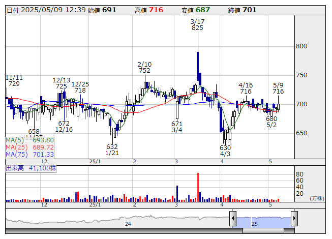 2025年05月09日12時43分 【材料】テクノロジーが上げ幅を拡大、太陽光設備に関する大型受注を獲得 テクノロジー <日足> 「株探」多機能チャートより テクノロジーズ<5248>が上げ幅を拡大している。午後0時30分ごろ、子会社エコ革が太陽光設備に関する複数案件を受注したと発表しており、好材料視されている。 森ビル(東京都港区)から蓄電池併設型太陽光発電設備の販売に関する受注を獲得したもので、受注金額は約20億円。26年1月期に売り上げ計上する予定としている。 出所:MINKABU PRESS