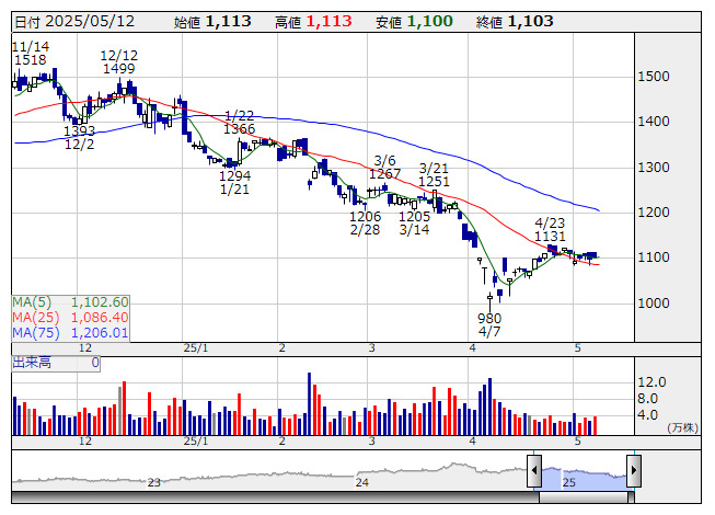 アネスト岩田 <日足> 「株探」多機能チャートより