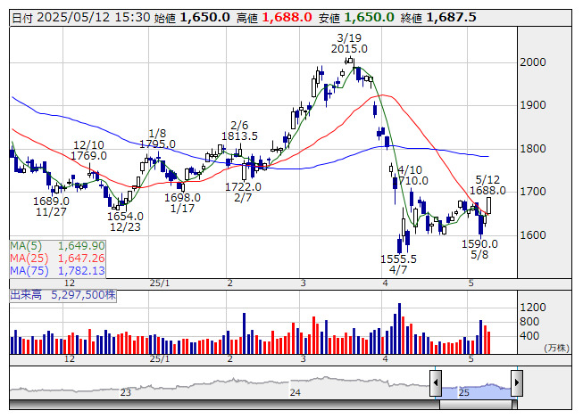 <3132> マクニカHD 1763.5 +57.5 ( +3.4%) 1791.1 1824.5