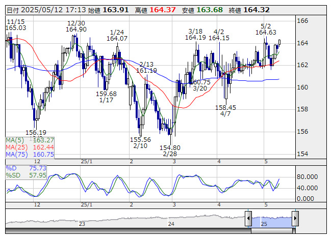 ユーロ/円 <日足> Slowストキャス 「株探」多機能チャートより12日の東京市場でドル・円は大幅高。米中貿易交渉の進展で窓を空けて寄り付いた後、145円70銭から上昇基調に。その後は安値付近に失速する場面もあった。ただ、夕方にかけて米中双方が関税引き下げが報じられると、147円99銭魔で上値を伸ばした。