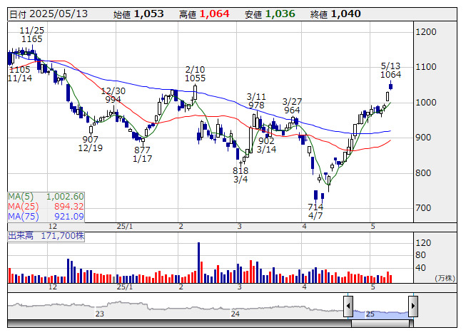 株主優待制度を導入。毎年6月末と12月末時点で1000株以上を6ヵ月以上継続保有する株主を対象に、QUOカード5000円分を年2回贈呈する。なお、初回の25年6月末基準日に限り、保有期間の条件はなく1000株以上を保有する全株主が対象となる。一方、1-3月期(1Q)経常は30%減益で着地。