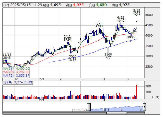Aiロボ <日足> 「株探」多機能チャートより個別ではAiロボティクス<247A>、ZenmuTech<338A>、FFRIセキュリティ<3692>、AVILEN<5591>、Retty<7356>がストップ高。ナイル<5618>、イーエムネットジャパン<7036>は一時ストップ高と値を飛ばした。Synspective<290A>、クリアル<2998>、dely<299A>、トヨコー<341A>、リネットジャパングループ<3556>など30銘柄は年初来高値を更新。弁護士ドットコム<6027>、サイバートラスト<4498>、ヤプリ<4168>、レナサイエンス<4889>、網屋<4258>は値上がり率上位に買われた。