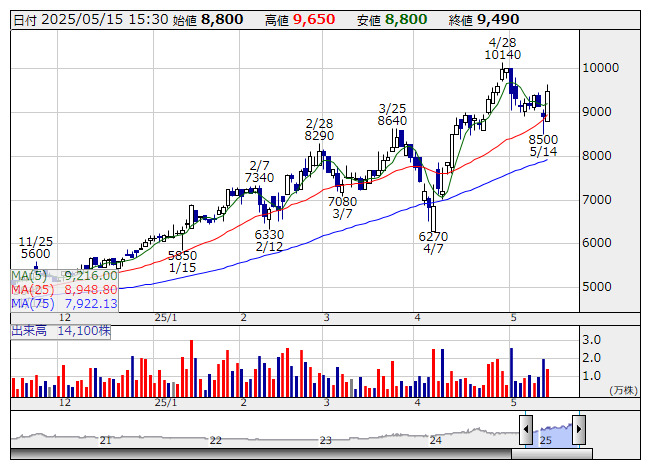 14日に決算を発表。「今期経常は9%増益、前期配当を15円増額・今期も90円継続へ」が好感された。