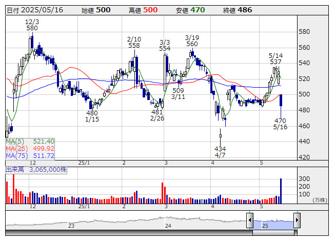 広済堂HD <日足> 「株探」多機能チャートより銘柄名<コード>16日終値⇒前日比