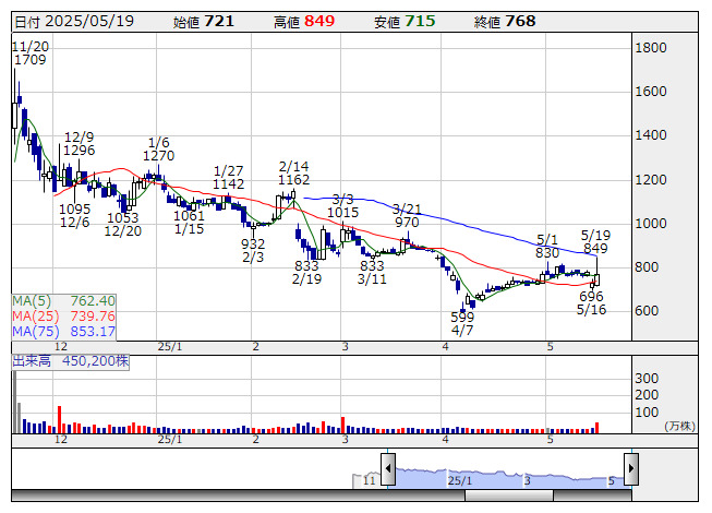 Hmcomm <日足> 「株探」多機能チャートより銘柄名<コード>19日終値⇒前日比