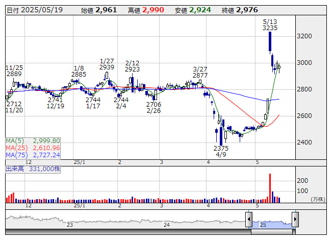 発行済み株式数(自社株を除く)の0.6%にあたる20万株(金額で3億円)を上限に自社株買いを実施する。買い付け期間は5月20日から5月30日まで。