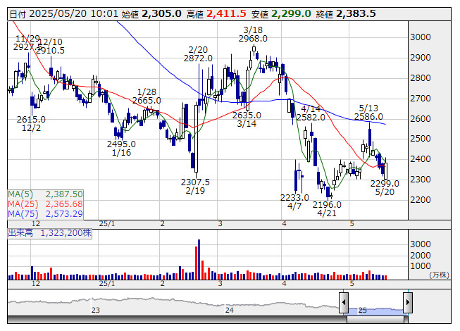 資生堂 <日足> 「株探」多機能チャートより■財務省 : 5月20日受付