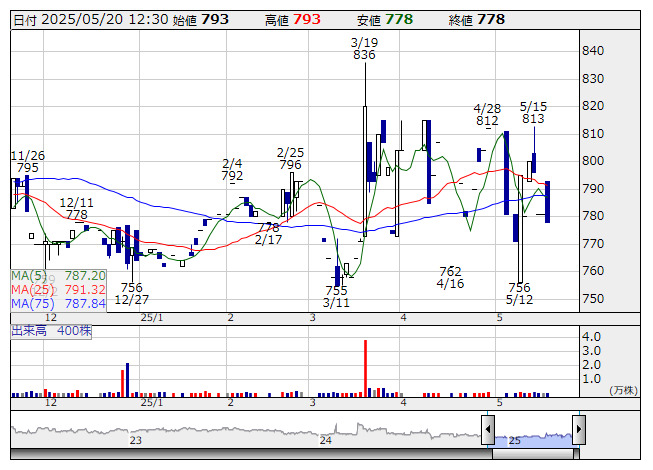 西菱電機 <日足> 「株探」多機能チャートより■財務省 : 5月20日受付