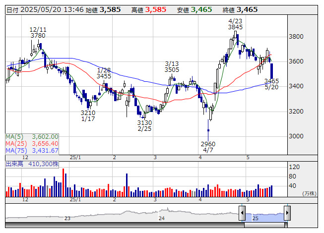 2025年05月20日13時44分 【材料】物語コーポが続落、株主優待制度の一部を変更 物語コーポ <日足> 「株探」多機能チャートより 物語コーポレーション<3097>が続落している。19日の取引終了後に発表した株主優待制度の一部変更が嫌気されている。現行制度では毎年6月末時点及び12月末時点の株主を対象に3500円相当(年7000円相当)の優待カードを進呈していたが、変更後は毎年6月末時点及び12月末時点で半年以上継続保有する株主が対象となる。なお、25年12月末時点の株主から変更される。 出所:MINKABU PRESS