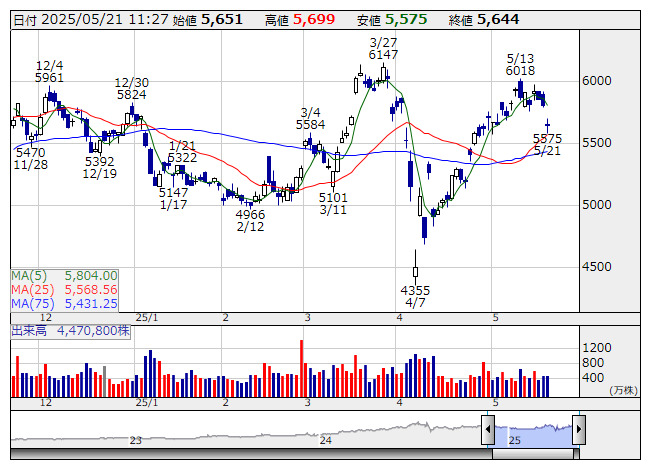 東京海上 <日足> 「株探」多機能チャートより25年3月期の最終利益は1兆552億円(前の期比51.7%増)だった。政策株式の売却加速に伴い有価証券売却益が増加したことに加え、海外子会社において、好調な保険引受や円安の影響で正味収入保険料が増収した。