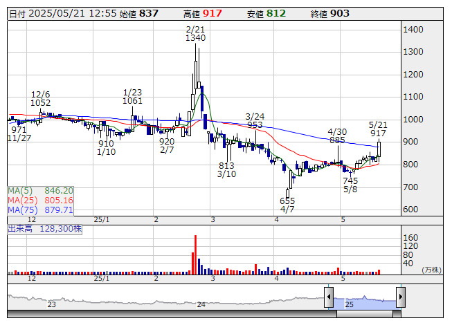 グラッドC <日足> 「株探」多機能チャートより