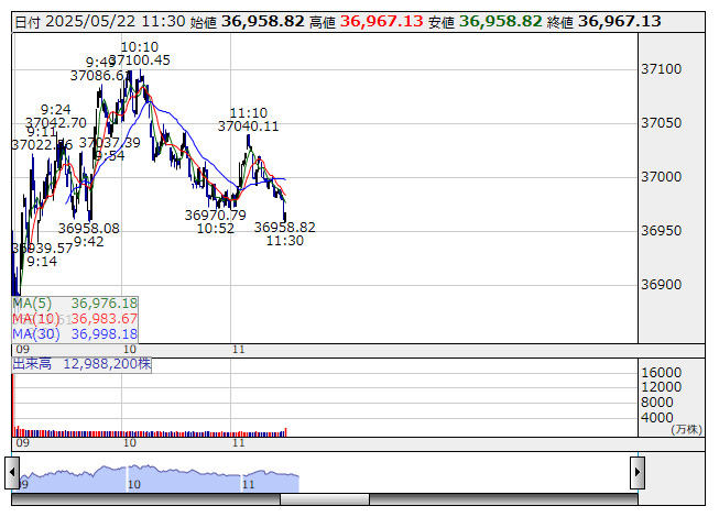 日経平均 <1分足> 「株探」多機能チャートより日経平均 : 36967.13 (-331.85)