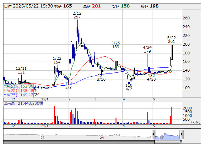 【材料】本日のランキング【値上がり率】 (5月22日)