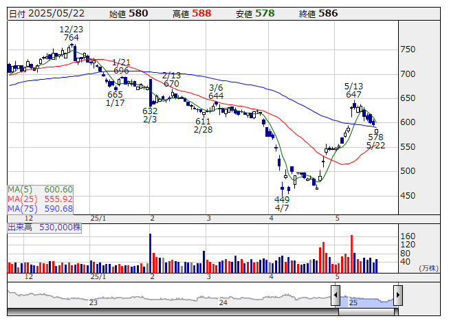 ワコム <日足> 「株探」多機能チャートよりワコム<6727>は9日、2026年3月期から2029年3月期を対象期間とする新たな中期経営計画「Wacom Chapter 4」を策定したと発表した。