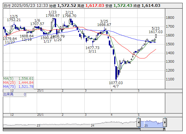 非鉄金属 <日足> 「株探」多機能チャートより●東証33業種 値上がり: 29 業種 値下がり: 4 業種