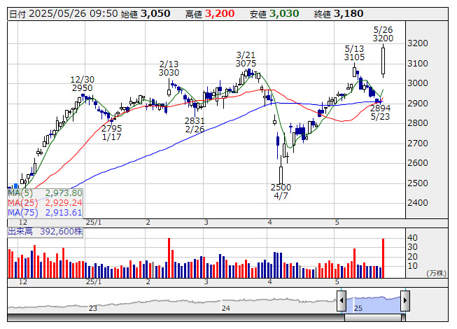 2025年05月26日09時51分 【材料】カヤバは大幅高、株主総会招集通知の大株主一覧に野村絢氏 カヤバ <日足> 「株探」多機能チャートより カヤバ<7242>は大幅高。同社がこの日朝方に開示した定時株主総会の招集通知において、大株主一覧に野村絢氏の名前が記載されていた。アクティビストとして知られる村上世彰氏の長女とみられ、これを材料視した思惑的な買いが入っている。3月31日時点の大株主上位10位のうち、野村氏は第9位。持ち株数は115万6600株で、持ち株比率は2.4%となっている。 出所:MINKABU PRESS