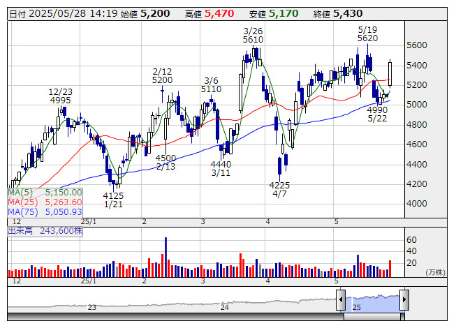 2025年05月28日14時20分 【材料】ハピネット---大幅反発、増益計画や豊富なカタリスト評価で国内証券が目標株価上げ ハピネット <日足> 「株探」多機能チャートより ハピネット<7552>は大幅反発。SBI証券では投資判断「買い」を継続し、目標株価を5720円から6180円に引き上げている。期初計画は保守的なものになる傾向が強い中、26年3月期は増益計画を公表しており、ポジティブと評価しているもよう。また、7月に発売予定の「ガンダムカードゲーム」、6月5日発売予定のNintendo Switch 2によるビデオゲーム事業の収益拡大期待など、今後のカタリストも豊富であると指摘。 《ST》 提供:フィスコ