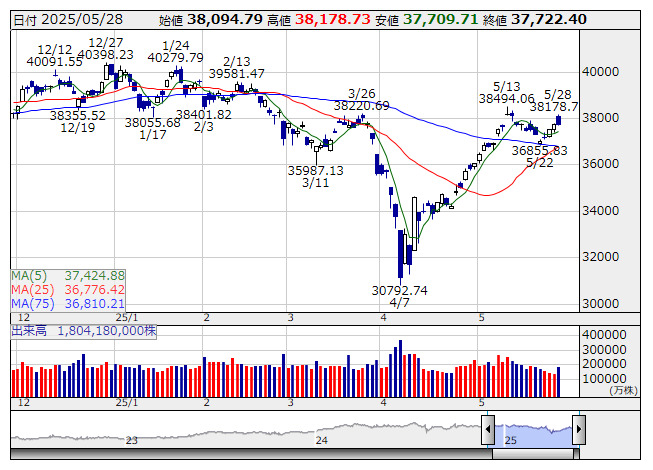 日経平均 <日足> 「株探」多機能チャートより[強弱材料]