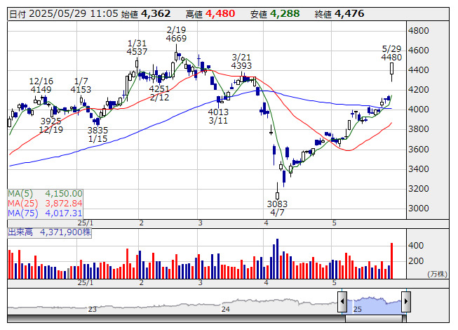 SBI <日足> 「株探」多機能チャートより