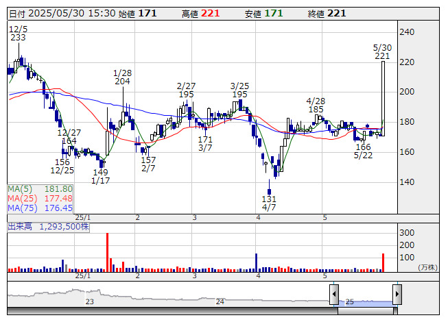 アライドアキ <日足> 「株探」多機能チャートより●寄付からの株価上昇率ランキング【ベスト50】