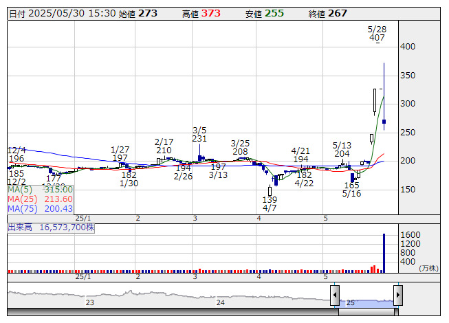 エスクリ <日足> 「株探」多機能チャートより●本日の約定回数増加率ランキング【ベスト50】